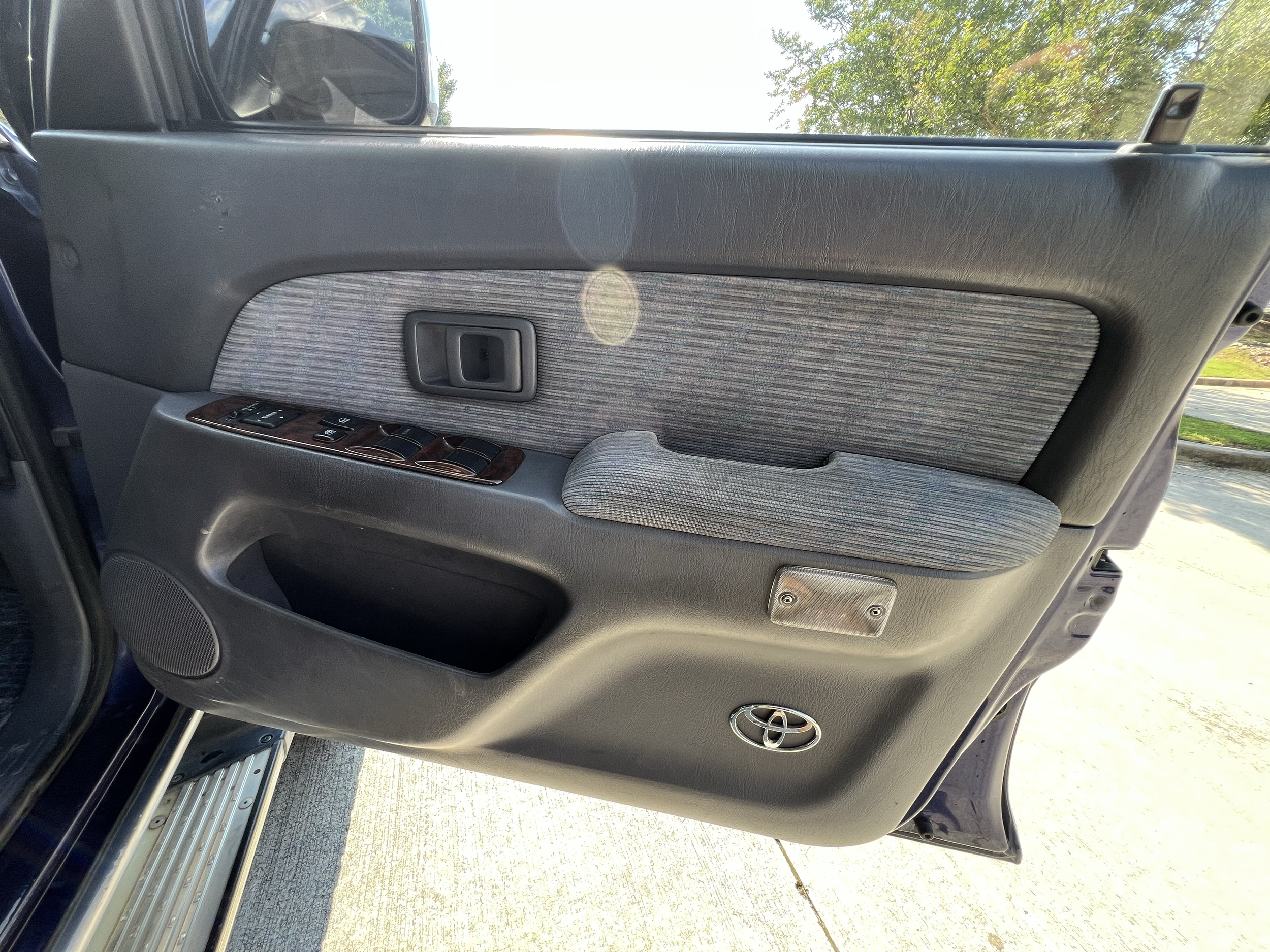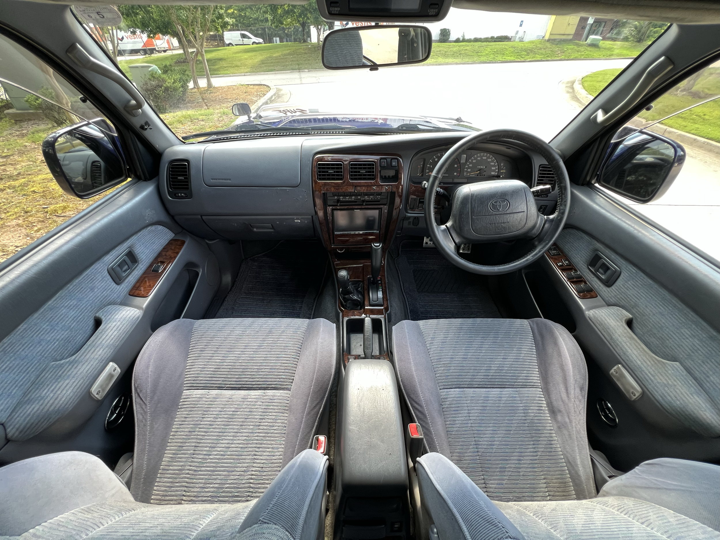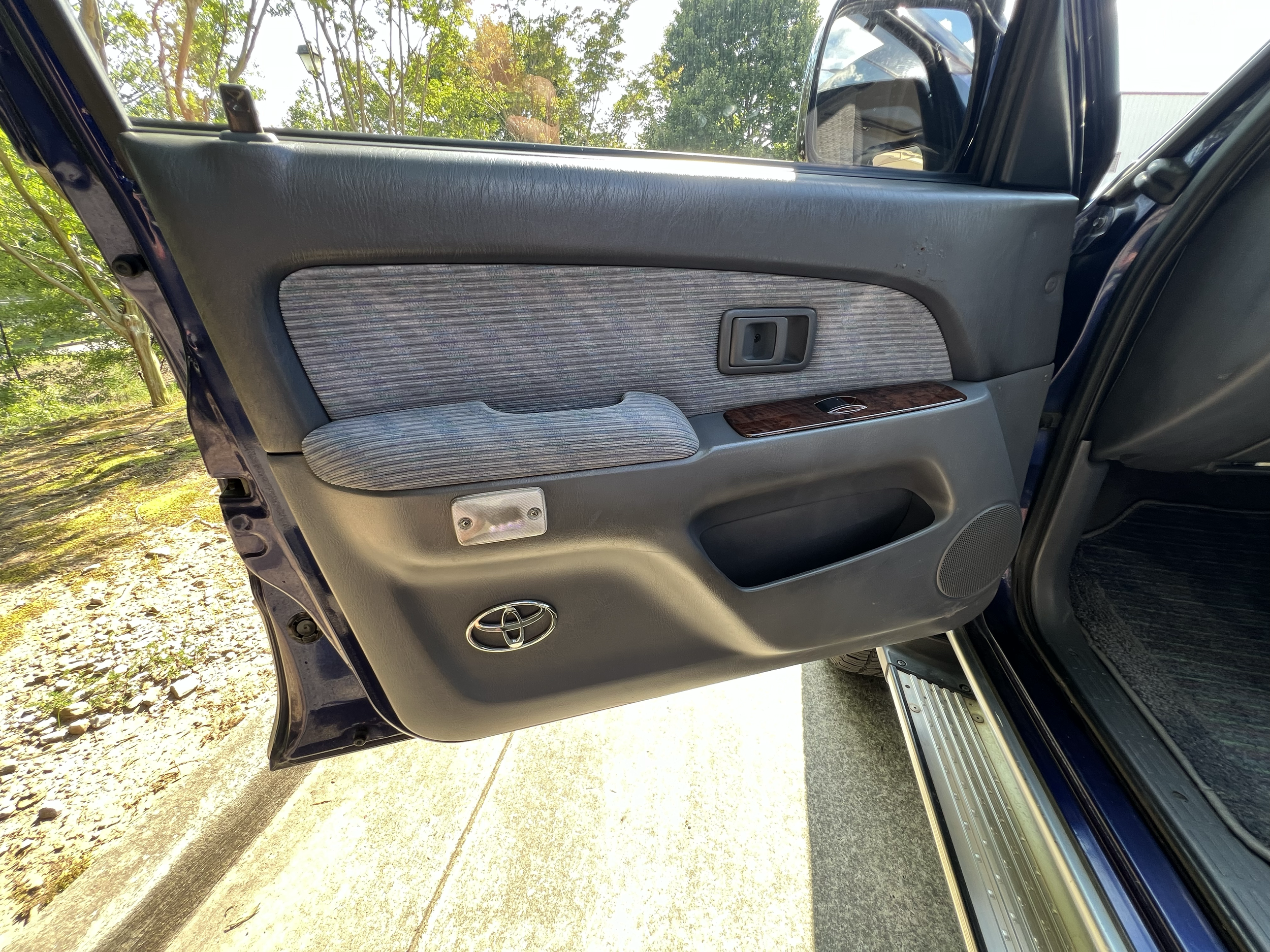 Blue/silver two tone exterior, Gray cloth interior with wood trim