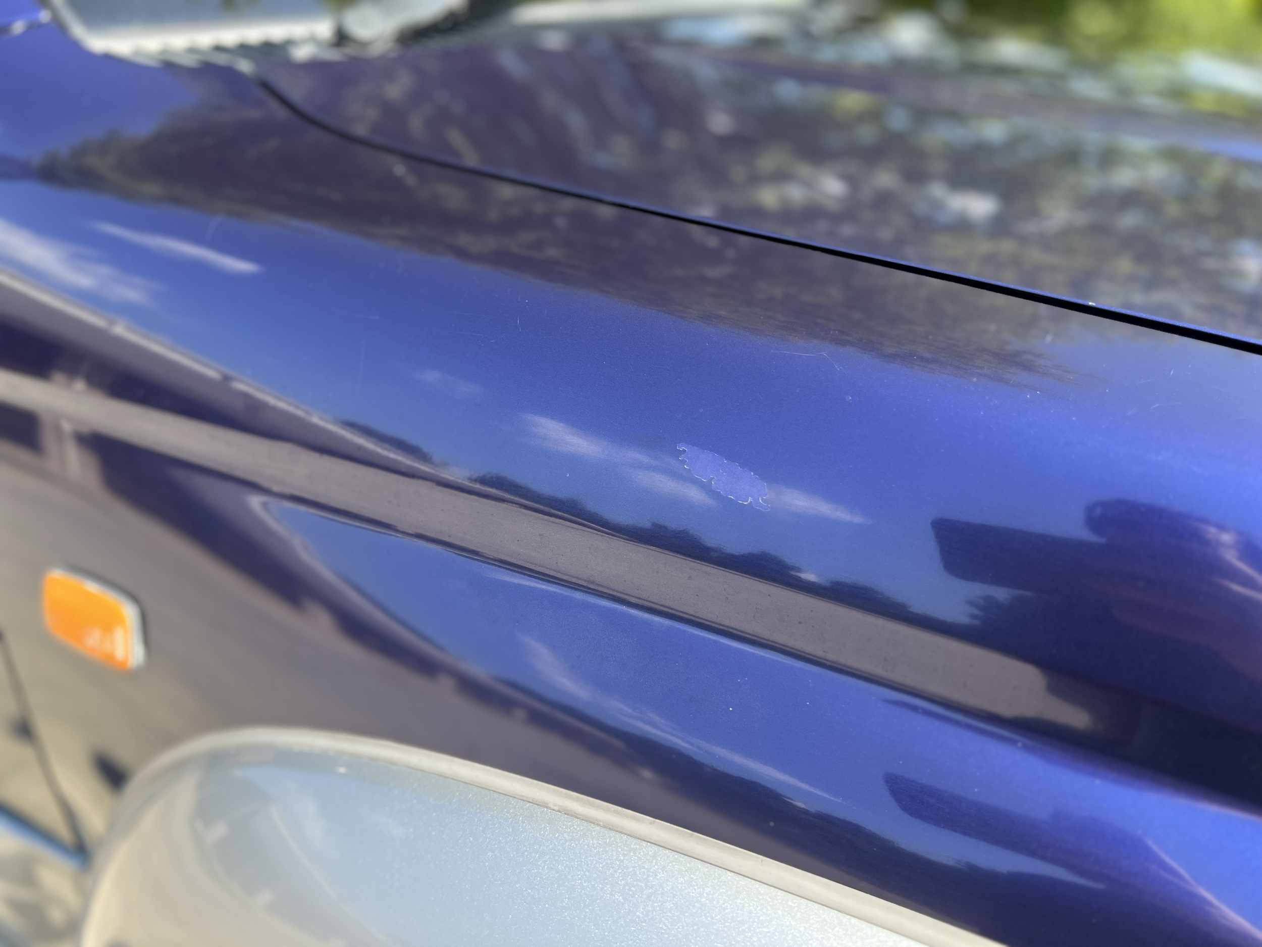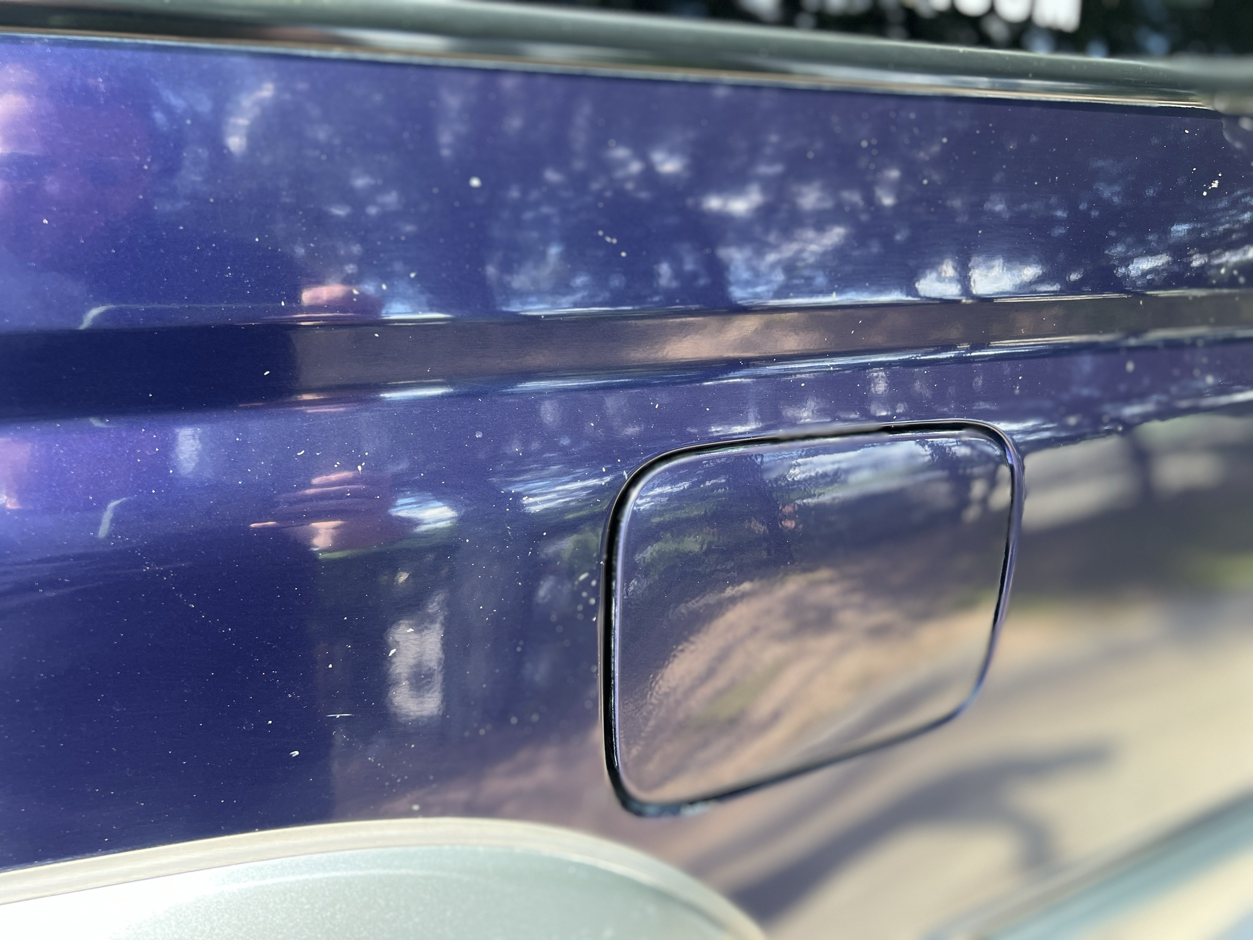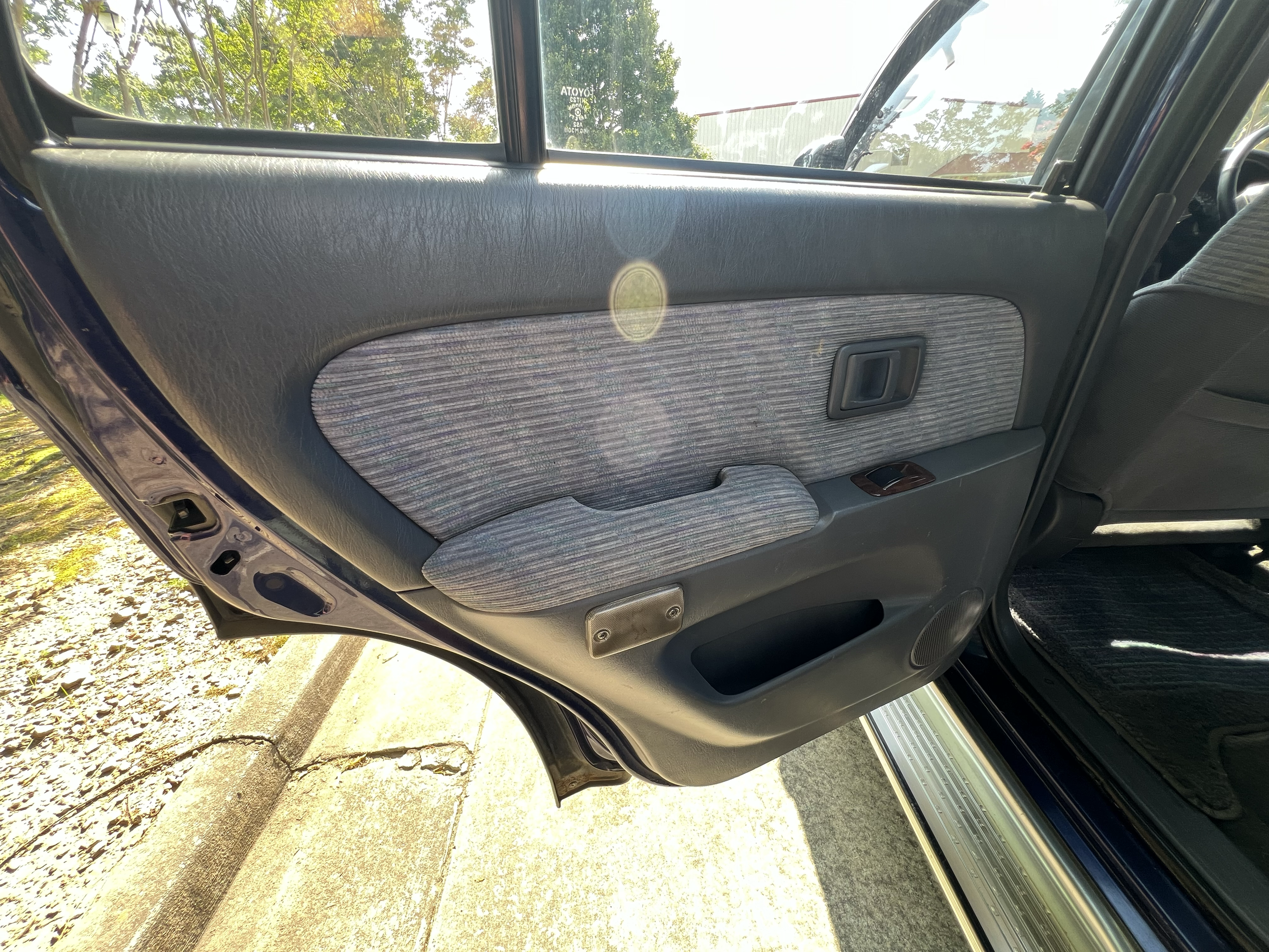 Blue/silver two tone exterior, Gray cloth interior with wood trim