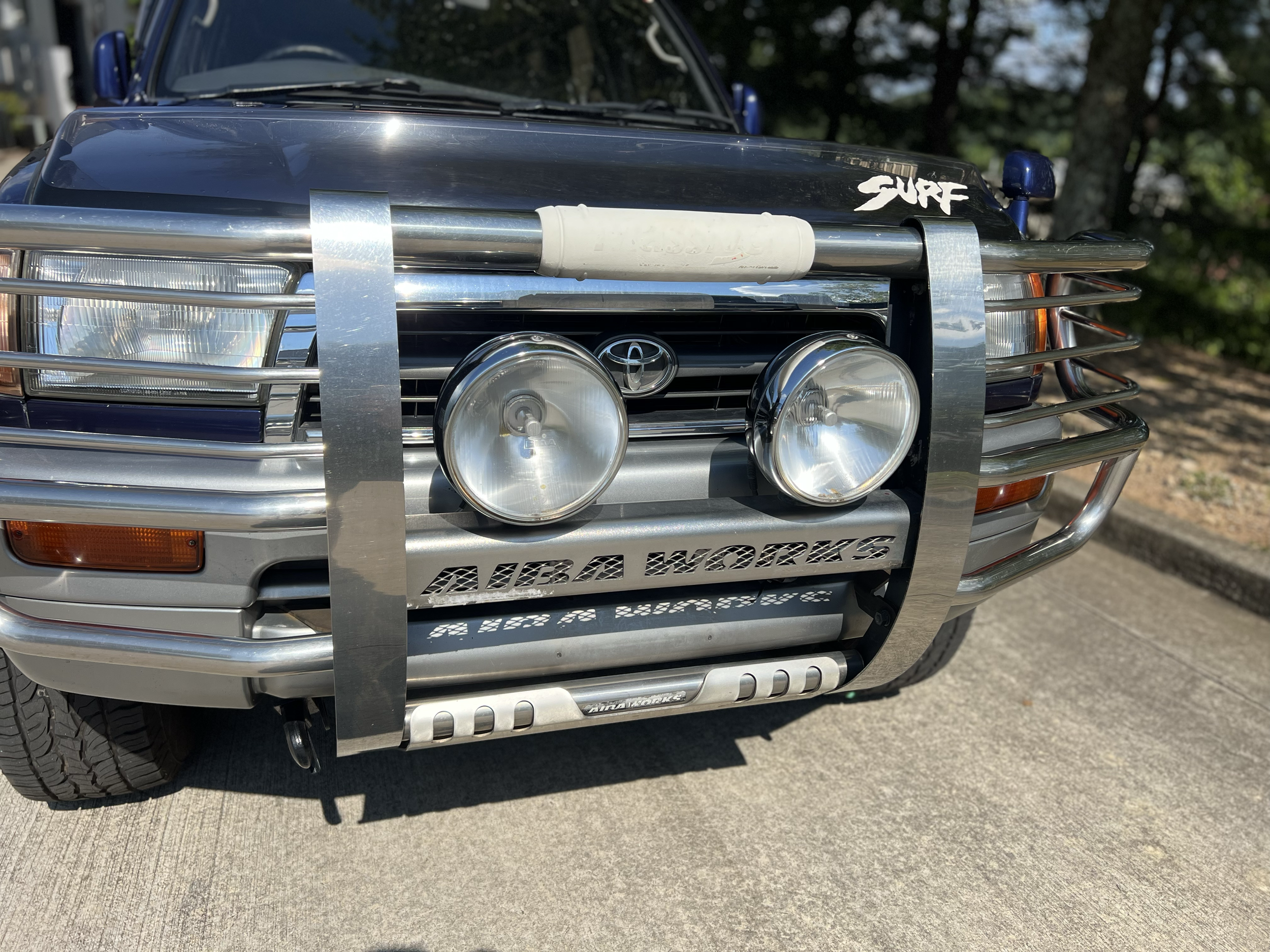 Aftermarket front bumper, fog lights, skid plate, wheels and mud flaps