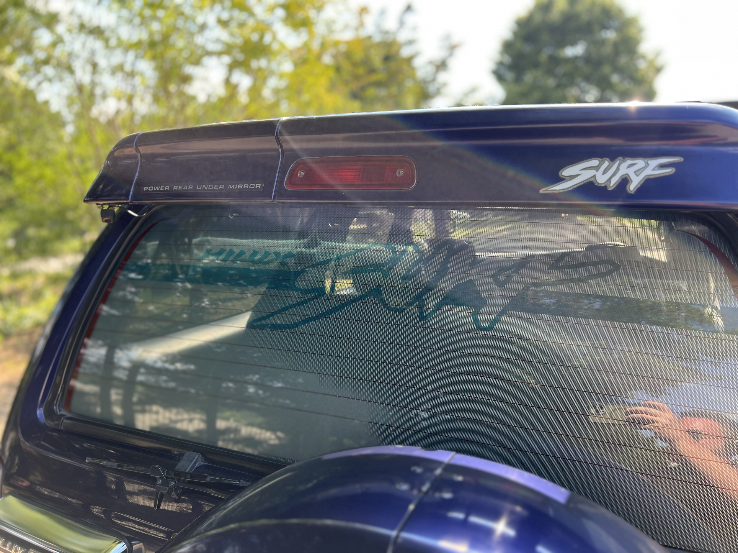 Unique JDM rear spoiler with fold down mirror